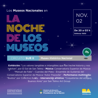 Museo Histórico Nacional Dirección: Defensa 1600 – San Telmo – CABA De 20 a 02 Exhibición: «Los valores tangibles e intangibles que han hecho historia y nos habitan», por El Sol de San Telmo. ...