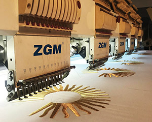 La confección se realiza en el Salón de Banderas de la Dirección General de Competencias Comunales y Talleres donde trabajan dos equipos especializados. En el área de costura se realiza el bordado del sol en las banderas de ceremonia, utilizando una máquina especial de seis cabezales que trabajan simultáneamente para lograr precisión.