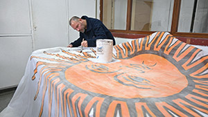 Por su parte, el equipo artístico se ocupa de pintar o sublimar el sol en las banderas de izar, garantizando resistencia a la intemperie y manteniendo la fidelidad del diseño original.